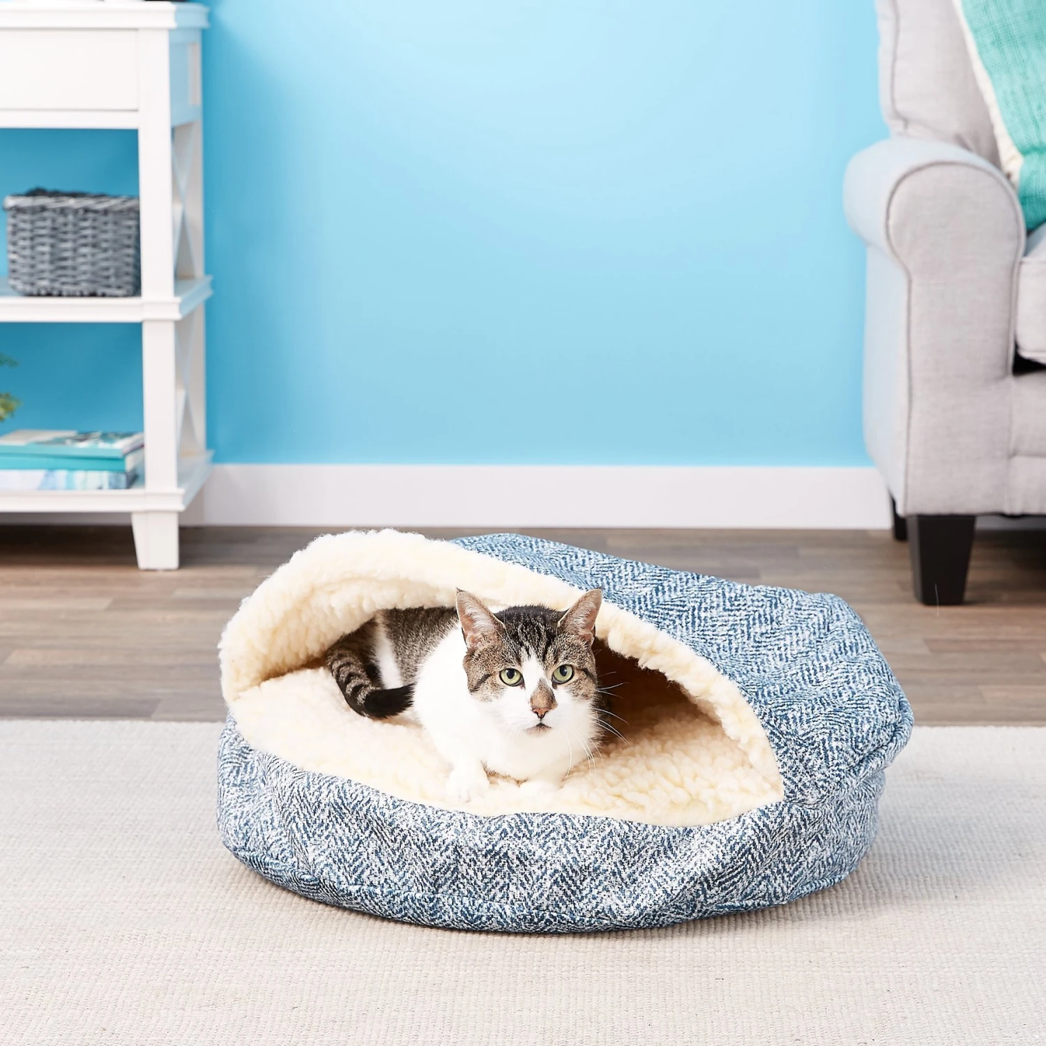 - Unique hooded design makes for a cave-like retreat that’s perfect for snuggling and staying warm.