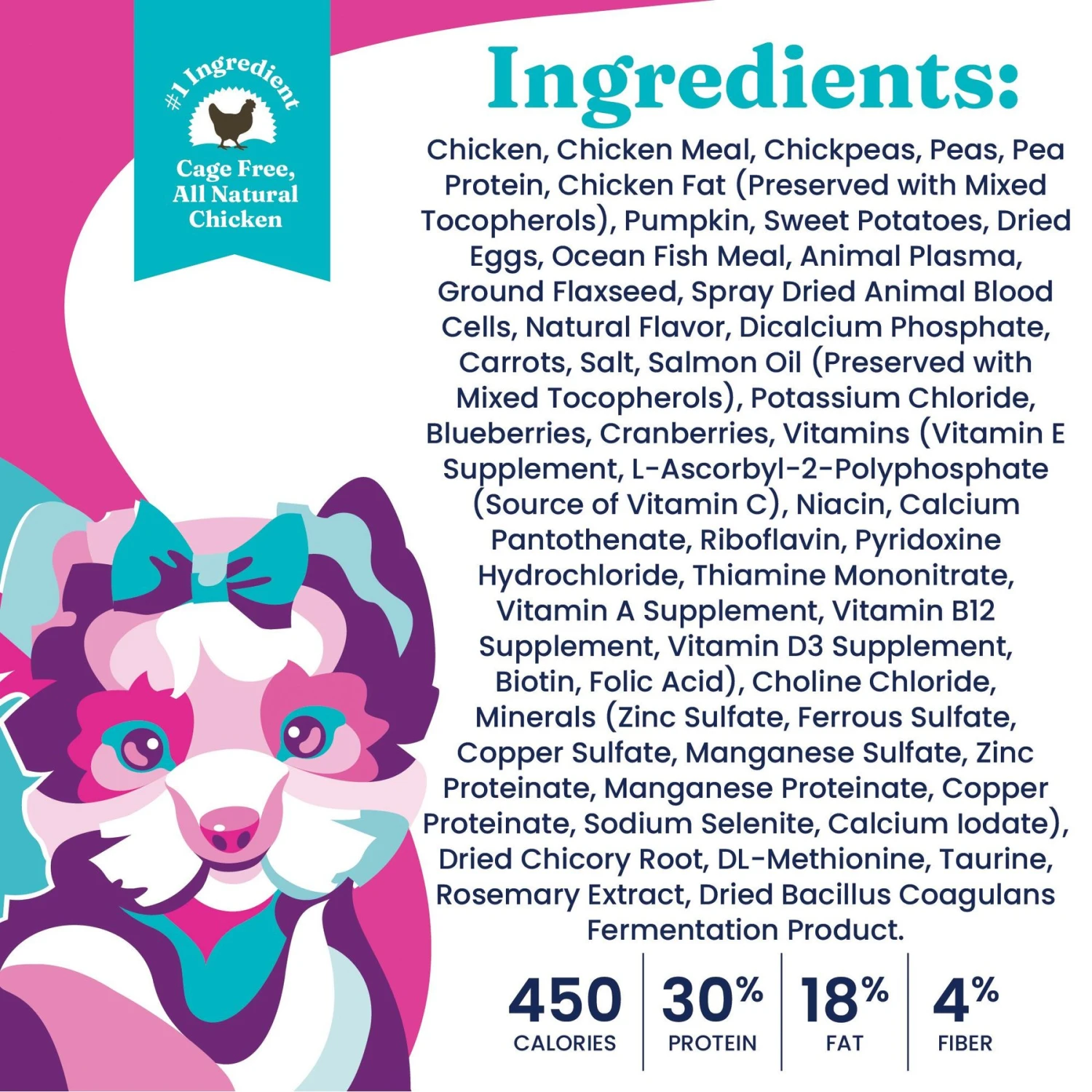 | Flavor | Chicken, Chickpea & Pumpkin, Beef, Sweet Potato & Apple, Lamb, Sweet Potato & Carrot |