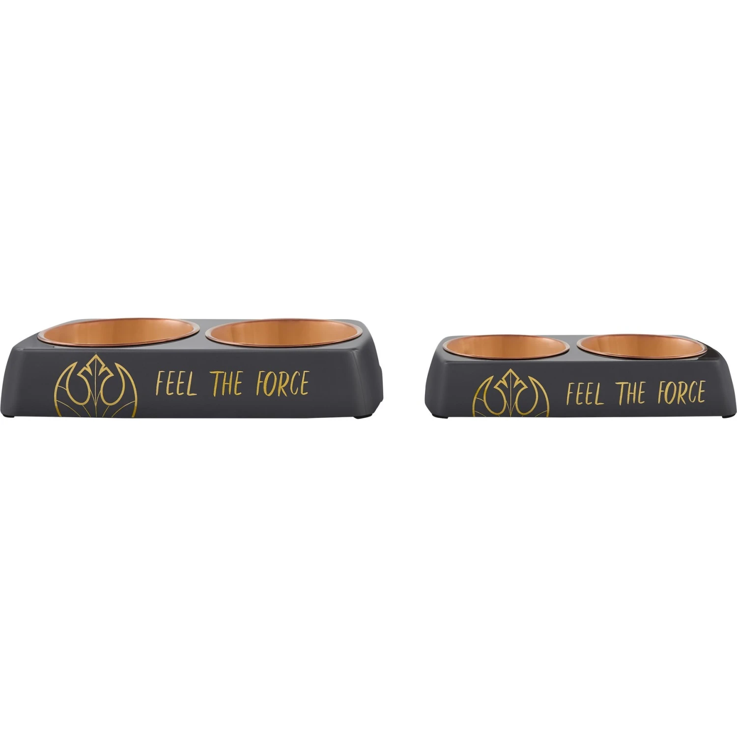 - This STAR WARS melamine base comes in black with an image of the Rebel icon that will elevate your dog’s dining experience, with two removable stainless-steel bowls. Matching treat jar also available.