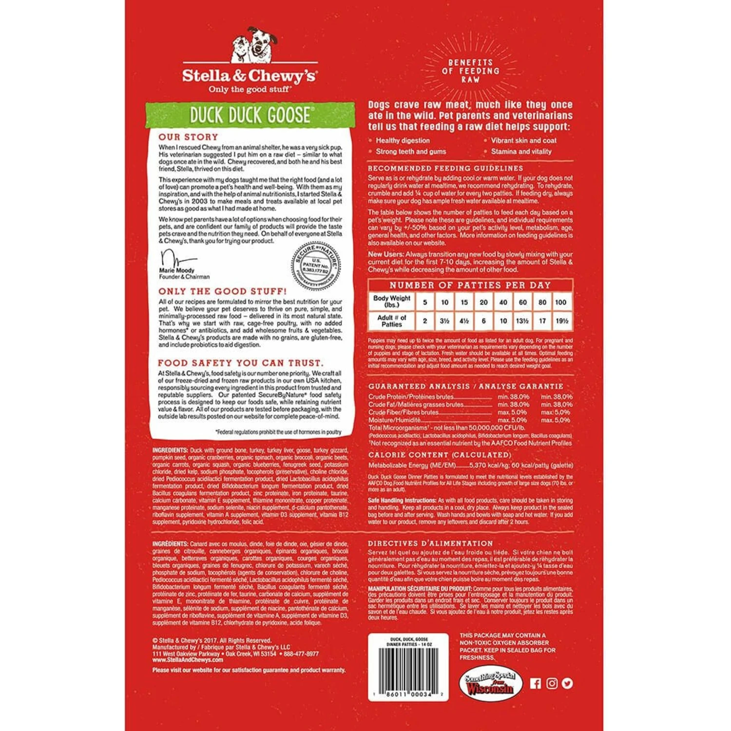 - Made in Stella & Chewy’s own USA kitchen with cage-free poultry and 100% organic-certified fruits and vegetables.