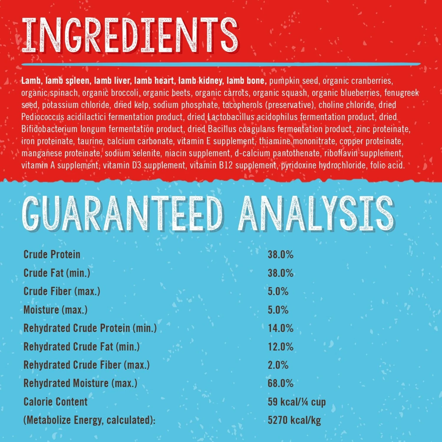 - Made with grass-fed lamb raised without hormones or antibiotics and 100% organic-certified fruits and vegetables.