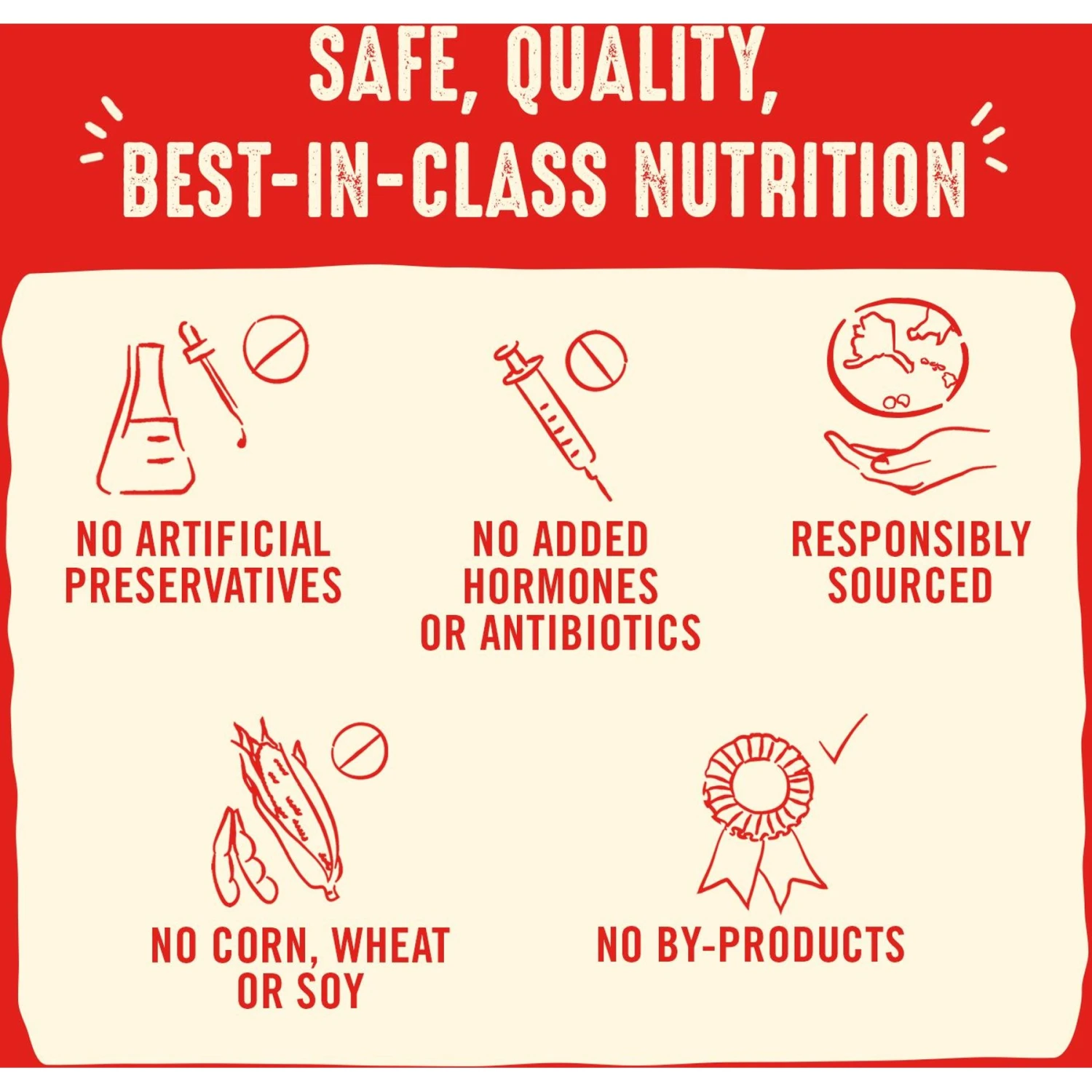 - Never contains grains, gluten, fillers, artificial preservatives, or colorings.