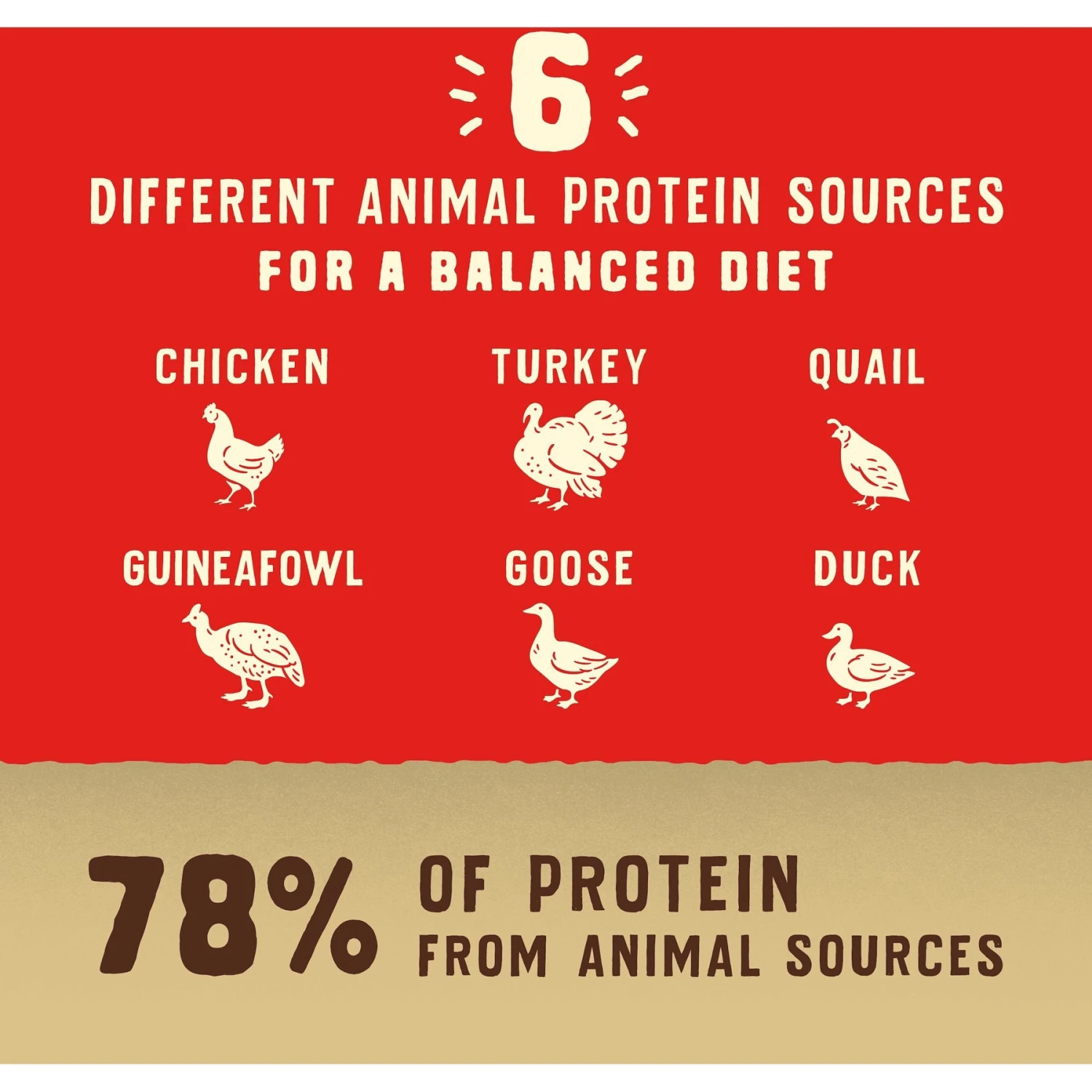 - Packed full of protein with chicken, turkey, quail, guineafowl, goose, and duck.