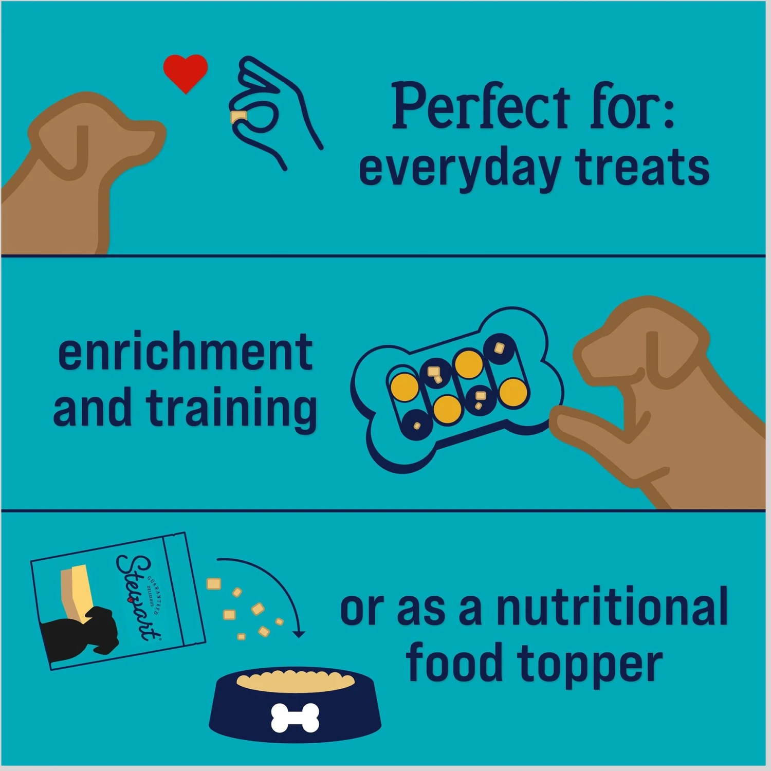 - Perfect for training—Healthy dog products for small, medium, and large dogs, these lightweight dog treats are easy to break into small pieces for all types of dog training or enrichment activities, and come conveniently packaged in a resealable tub.