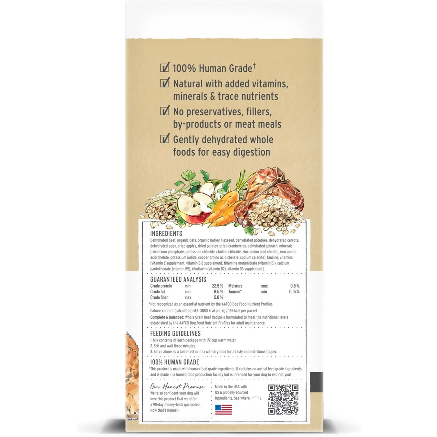 - Made with real, whole food ingredients like ranch raised beef, organic oats, carrots and apples.
