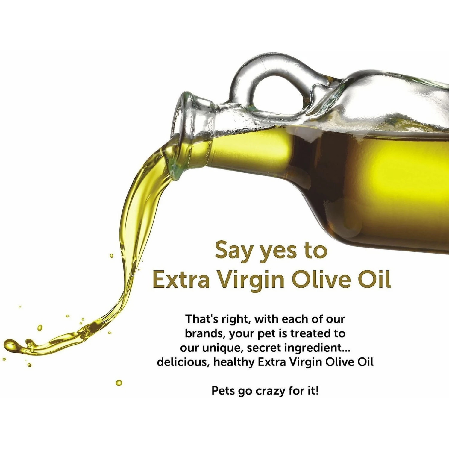 - Kibble is formulated with extra virgin olive oil for a variety of health benefits like a shiny, soft skin and coat.