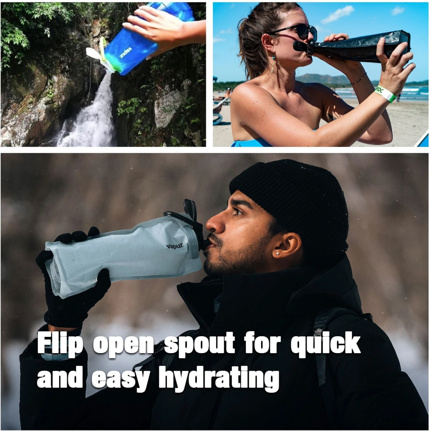 - Features an innovative reusable, foldable bottle!