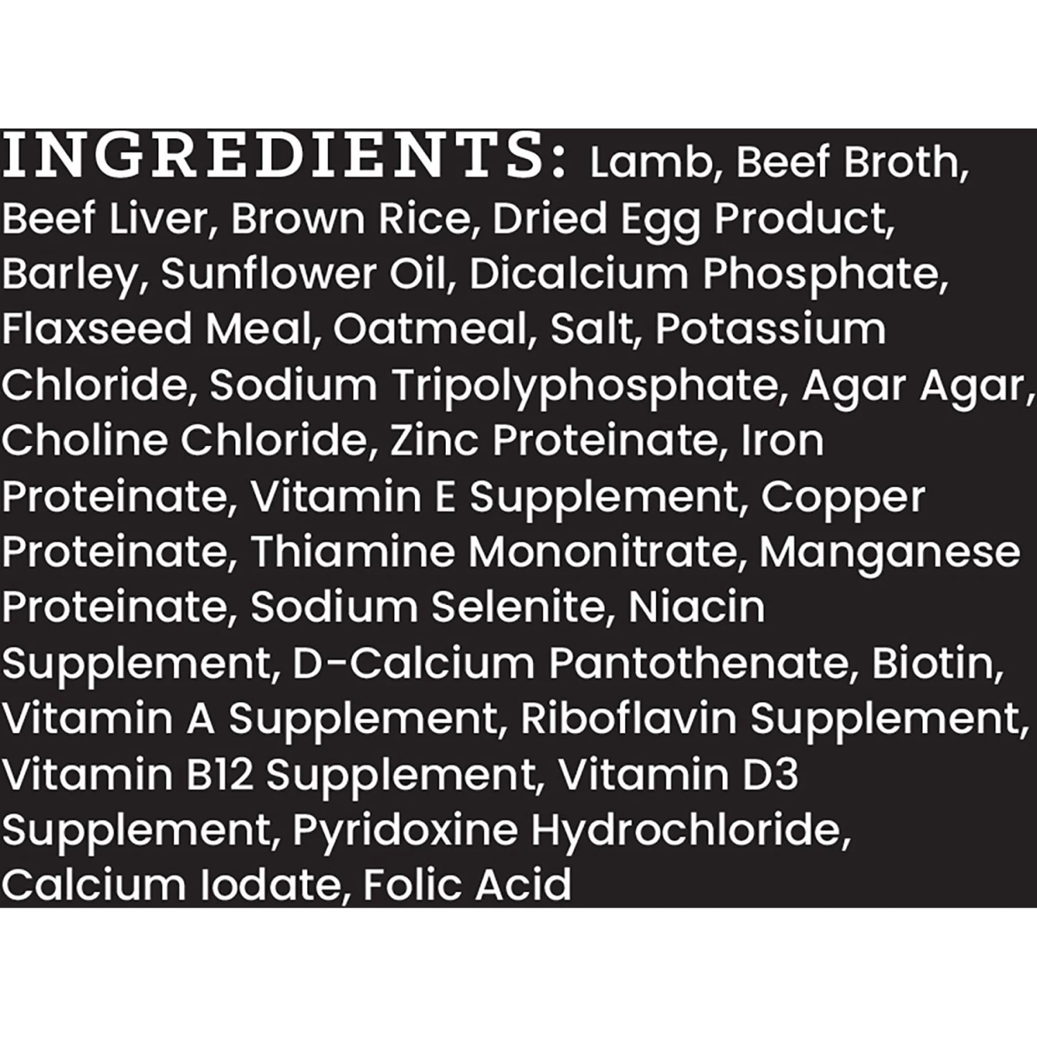 - Sourced and Made in the USA. Features real, recognizable ingredients like real lamb, vegetable broth, lamb liver and brown rice.