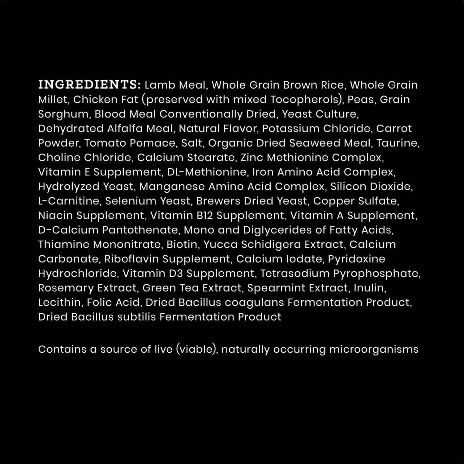 - Sourced and Made in the USA. Composed of 71% meat protein with premium-quality lamb meal.