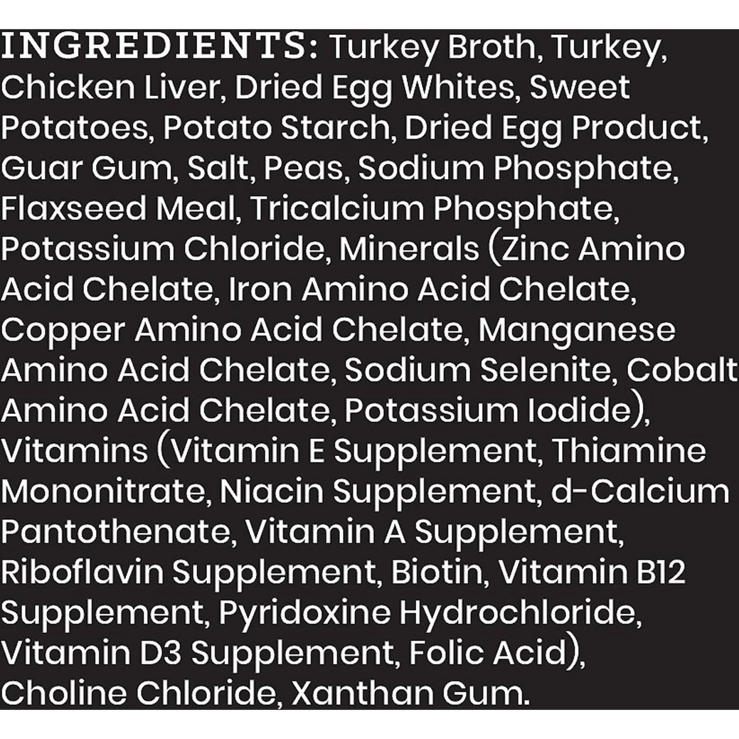 - Sourced and Made in the USA. Features real, recognizable ingredients like turkey broth, turkey, chicken liver, sweet potatoes and more!