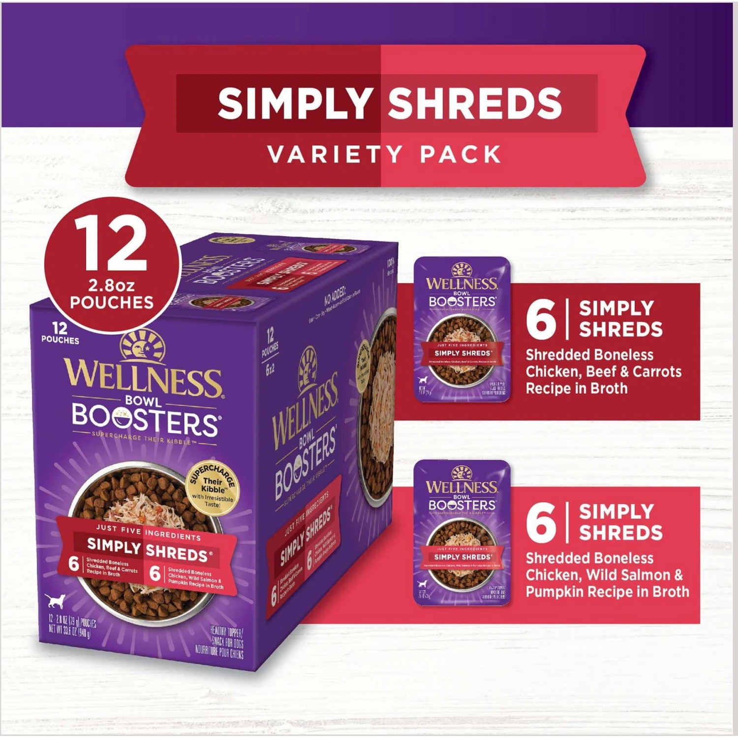 Be the first to review “Wellness Bowl Boosters Simply Shreds Variety Pack Dog Food Topping, 2.8-oz Pouch, 12 Count” Cancel reply