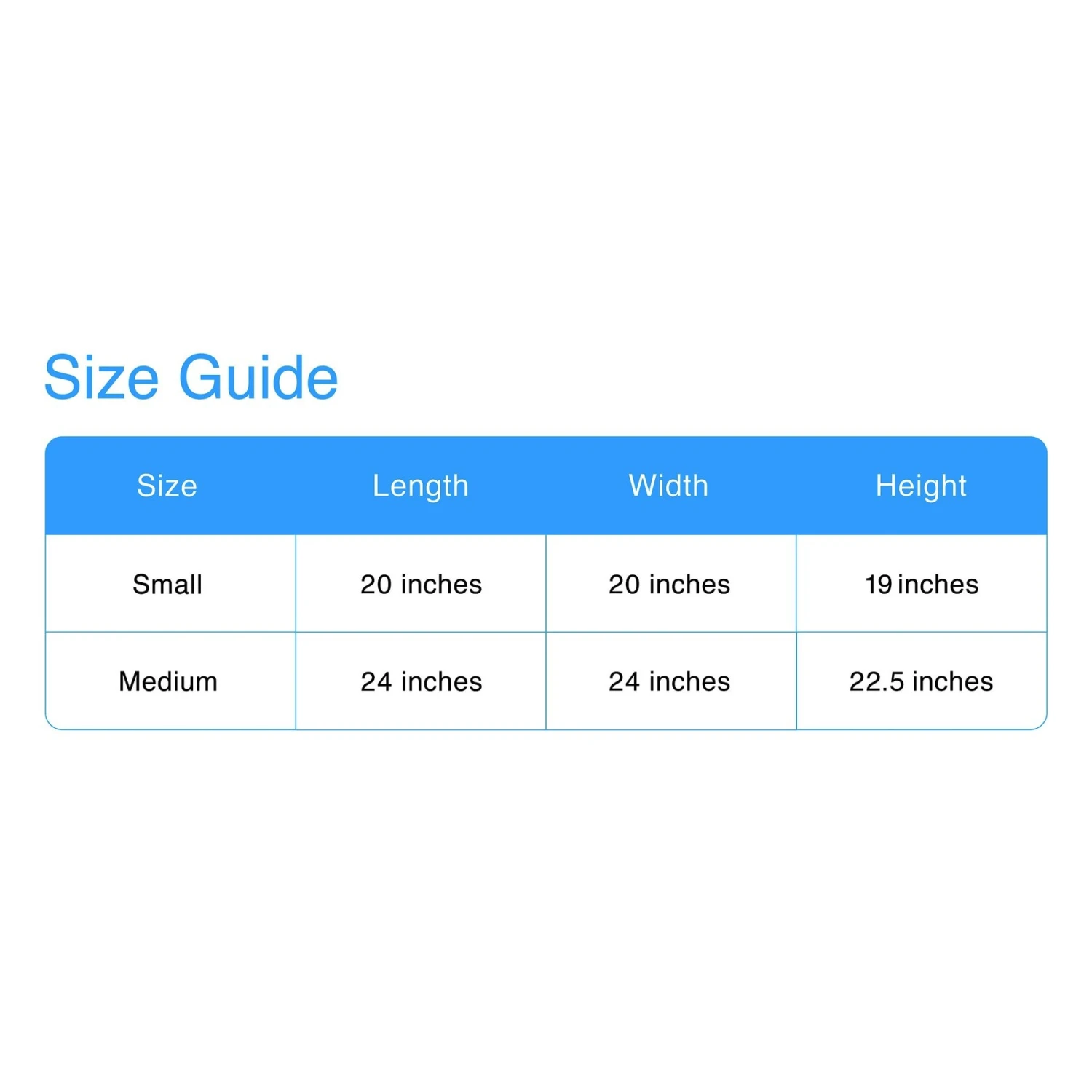 - Available in two sizes–small measures 20 x 20 x 19 inches and medium measures 24 x 24 x 22.5 inches.