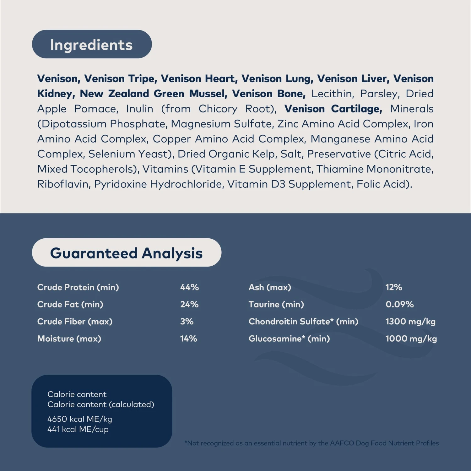 | Flavor | Mackerel & Lamb, Tripe & Lamb, Beef, Chicken, Lamb, Venison |